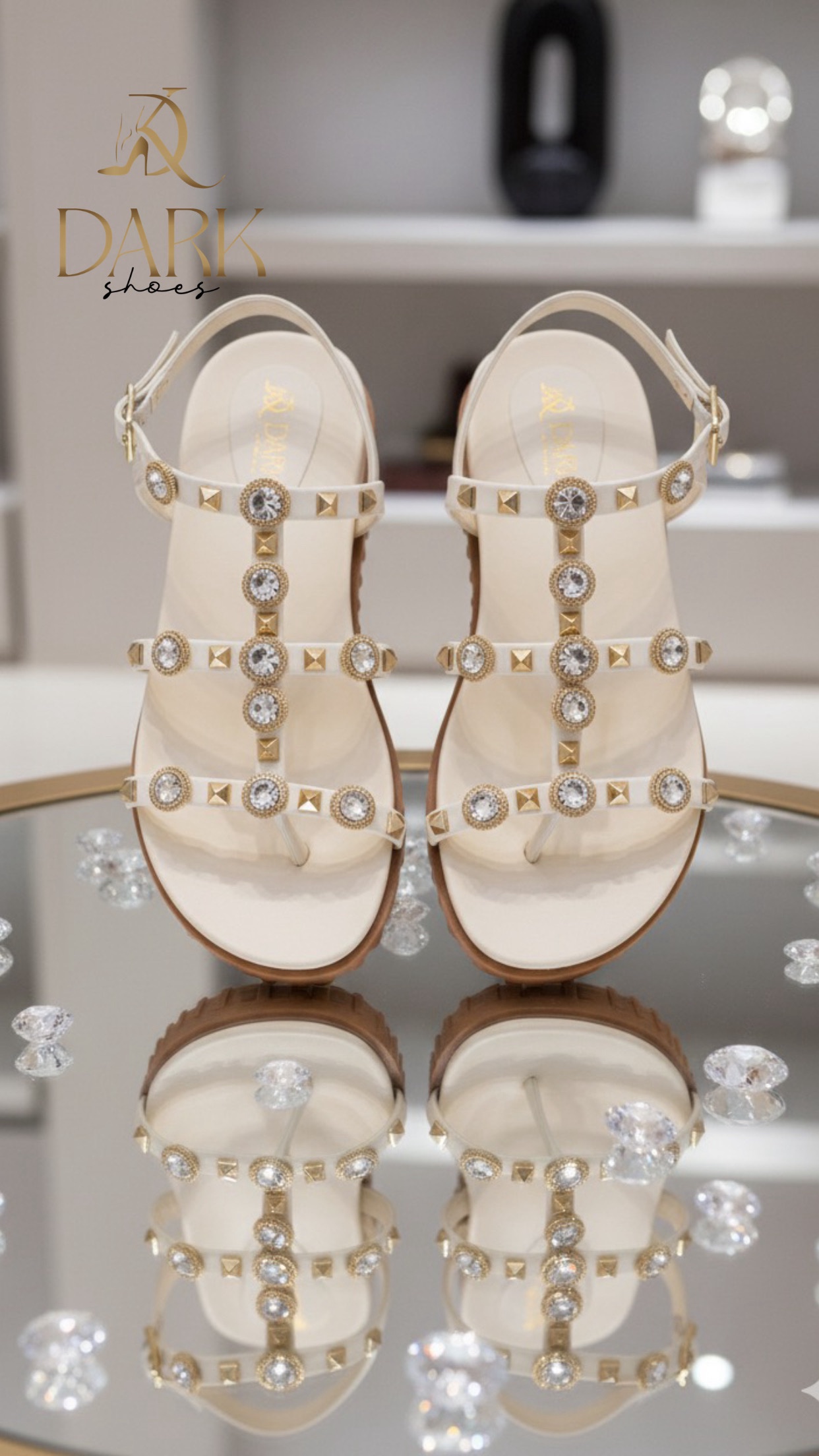 Uma sandália elegante e moderna que valoriza seu passo com brilho e sutileza