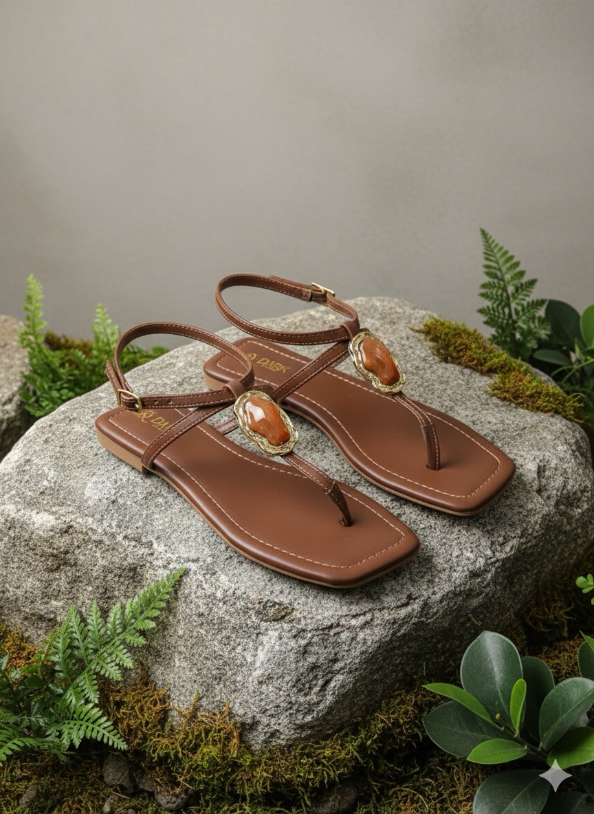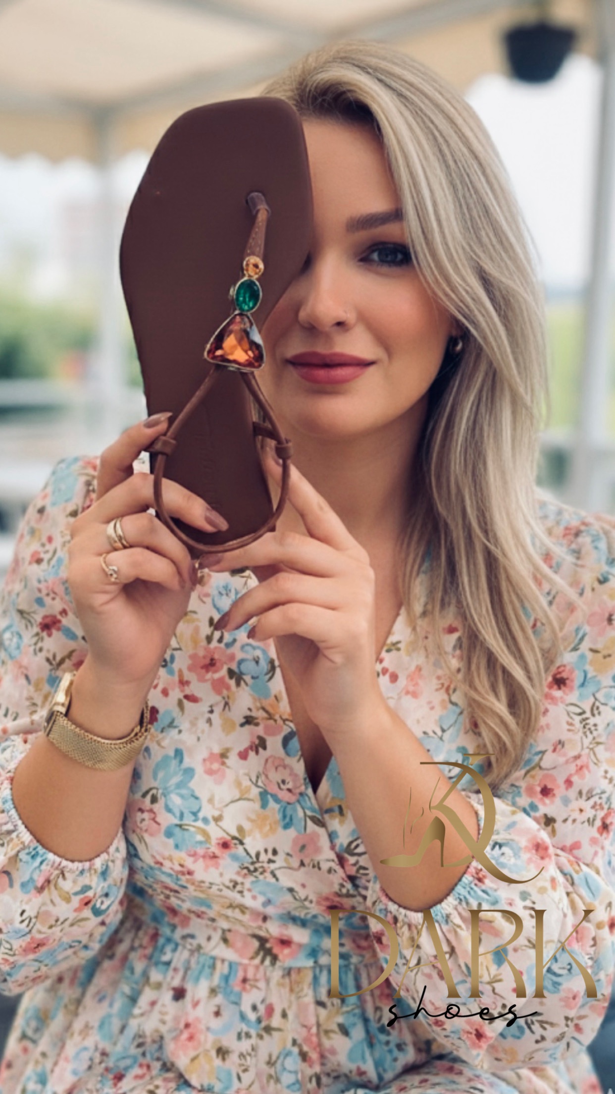 Uma sandália que mistura design moderno, pedras marcantes e aquele charme que transforma qualquer produção.